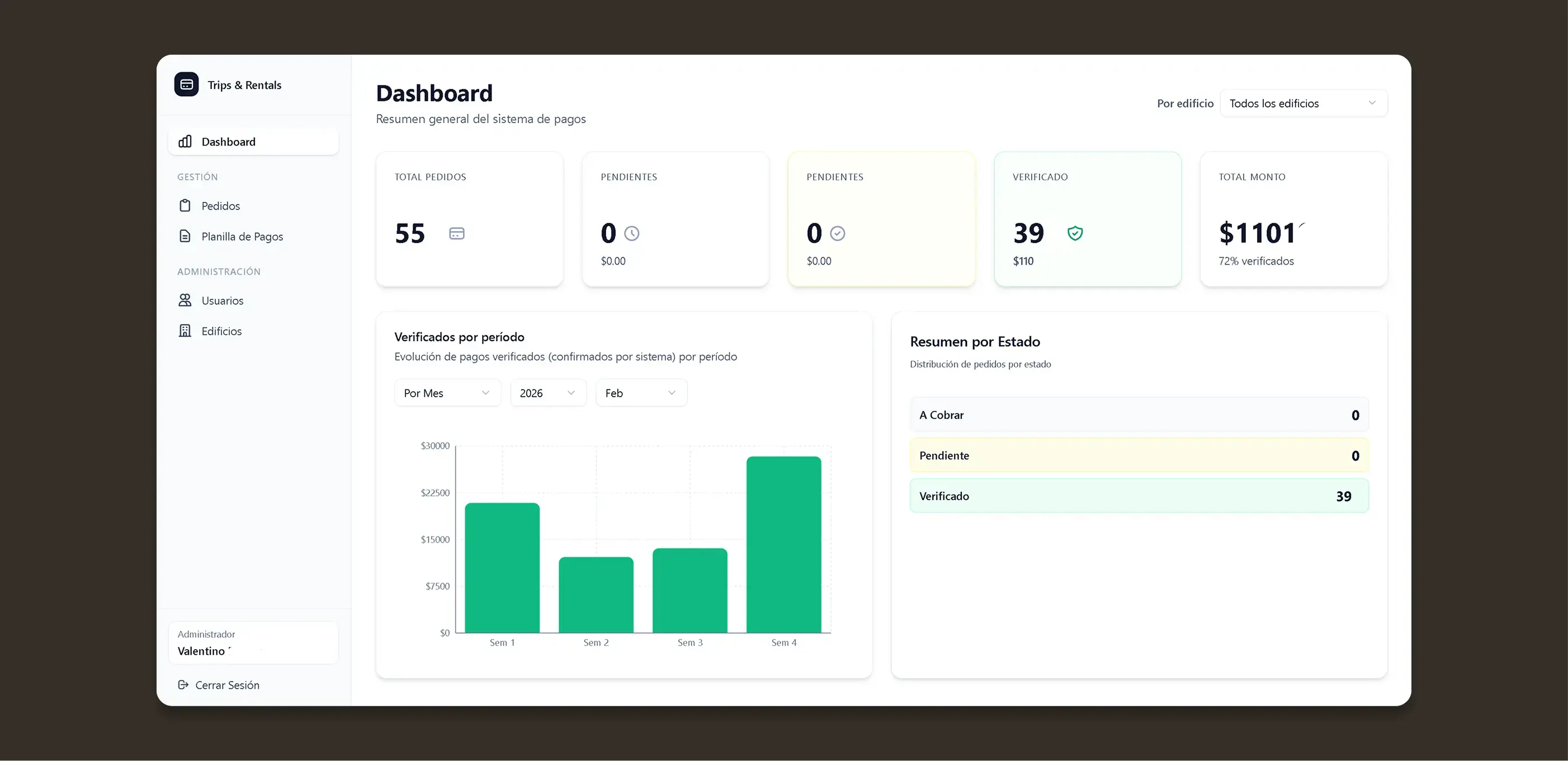 Top Rentals manages a large portfolio of short-term rental properties across multiple buildings and locations in Buenos Aires. As booking volume increased, the team needed a more reliable way to manage and execute reservation payments efficiently across their operations.