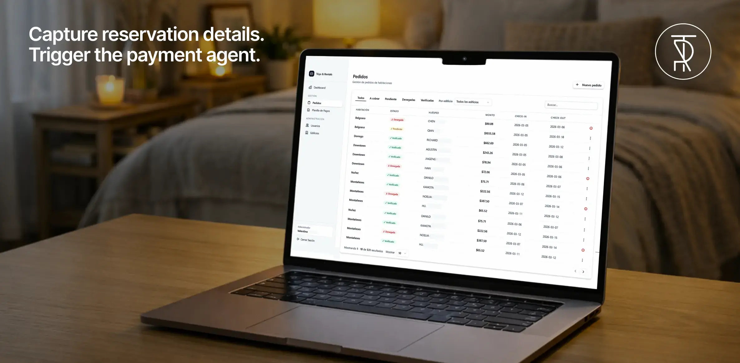 Top Rentals manages a large portfolio of short-term rental properties across multiple buildings and locations in Buenos Aires. As booking volume increased, the team needed a more reliable way to manage and execute reservation payments efficiently across their operations.